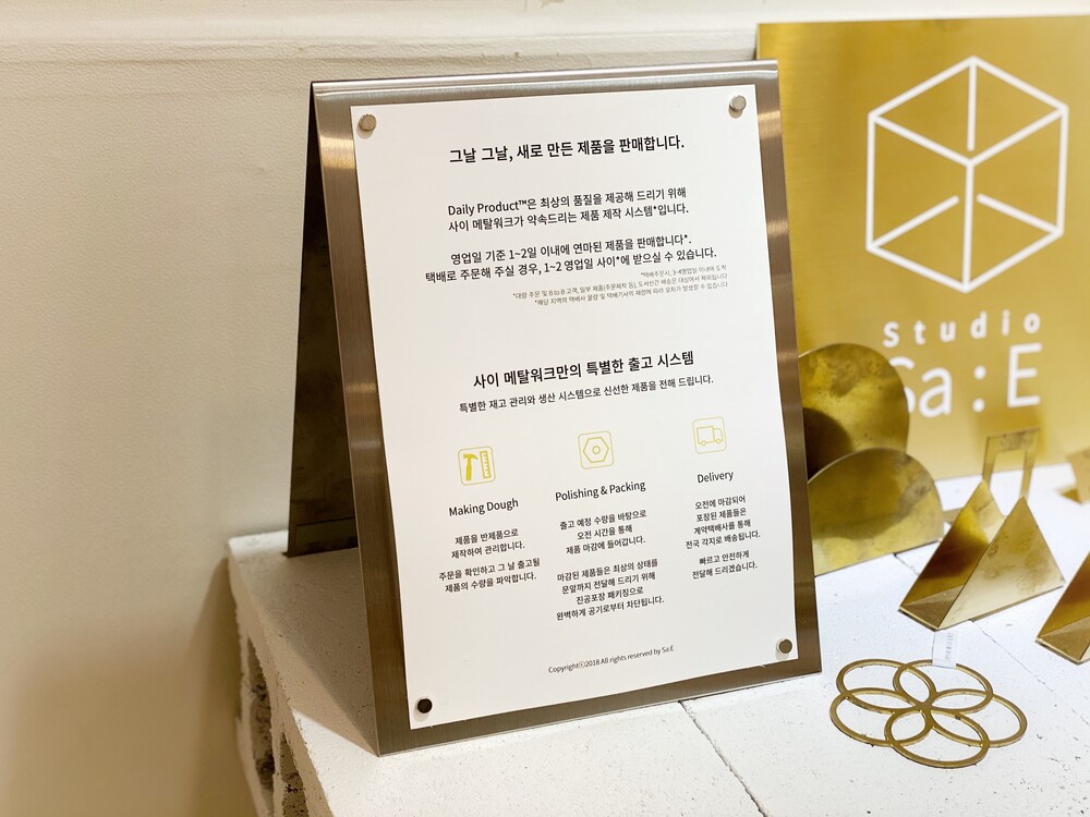 A. 스튜디오 사이의 제품들은 금속 소재 본연의 질감과 컬러를 보여드리고자 도금처리를 하지 않습니다. 다만 도금이 필요하신 분들을 위해 맞춤 제작으로 도금 처리를 진행하고 있습니다. 또 소재 본연의 느낌을 방해하지 않는 특수코팅 처리를 하고 있습니다.