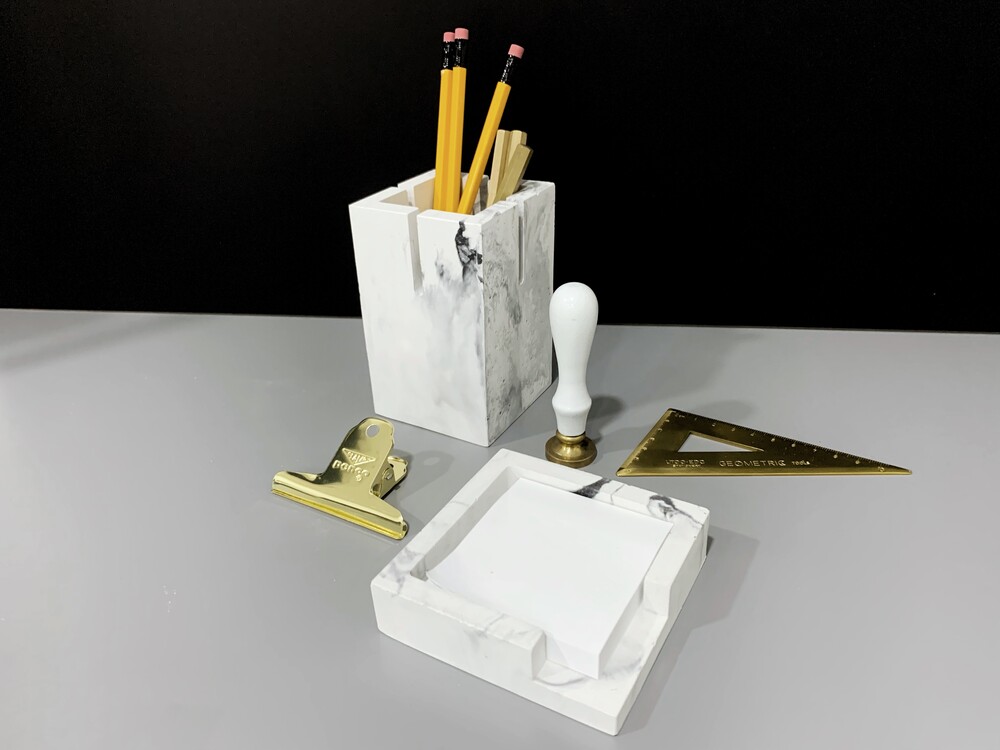 A. 마블 패턴 제품들의 경우 시트지 혹은 인쇄된 재질이 아닌, 제작 단계에서부터 원재료와 안료를 배합하는 방식으로 제작됩니다. 숙련된 전문가의 손길에 의해 핸드메이드로 제작되는 방식으로 오랫동안 사용하셔도 변형되지 않습니다.